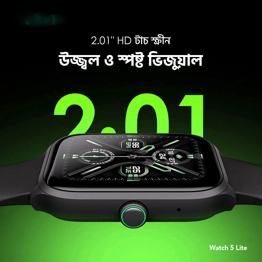বড় ও পরিষ্কার স্ক্রিন, নোটিফিকেশন ও ফিটনেস ডাটা সহজে দেখার সুবিধা।